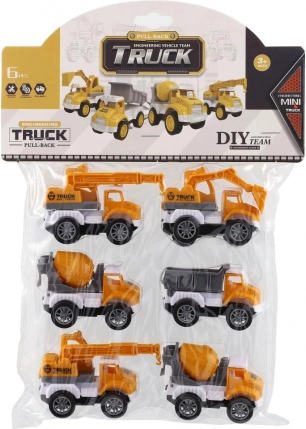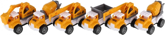Das Set enthält sechs Mini-Baufahrzeuge, die ideal für kleine Baumeister sind. Jedes Fahrzeug ist mit einem Rückziehantrieb ausgestattet, der ein einfaches Vorwärtsfahren ermöglicht – einfach nach hinten ziehen und loslassen.