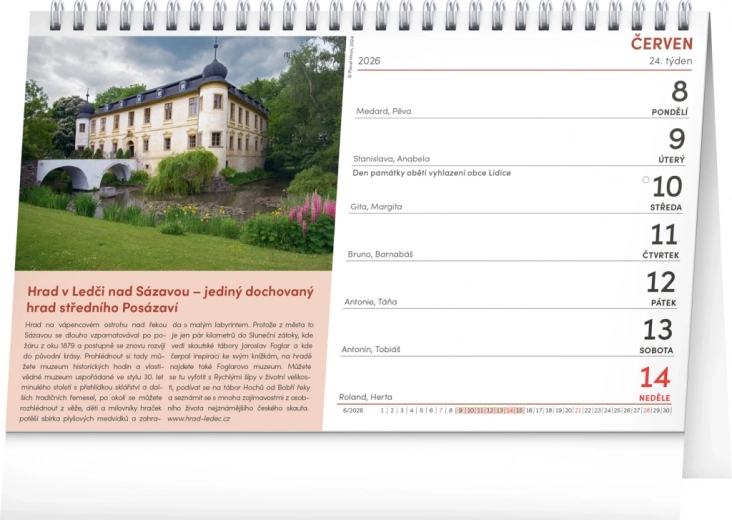 Der Kalender Burgen und Schlösser 2026 führt Sie dank wunderschöner Fotografien zu malerischen Orten der Tschechischen Republik. Es ist eine ideale Möglichkeit, Ihr Jahr zu planen und gleichzeitig die Schönheit der tschechischen Geschichte zu entdecken.