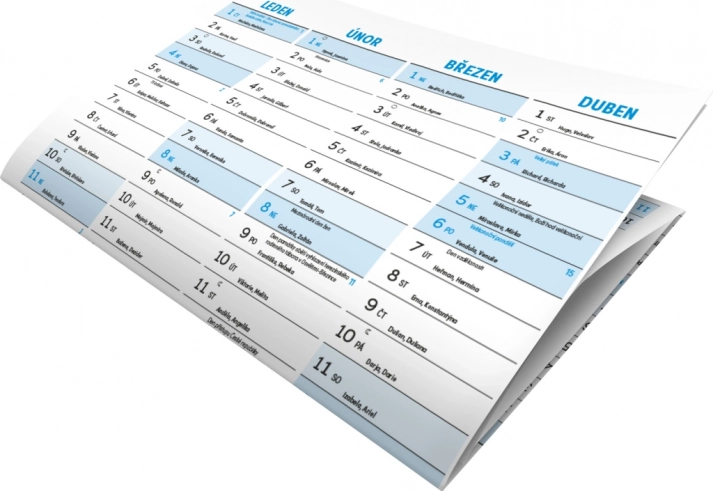 - Inhalt: Kalendarium mit tschechischen Namen und weltweiten Feiertagen