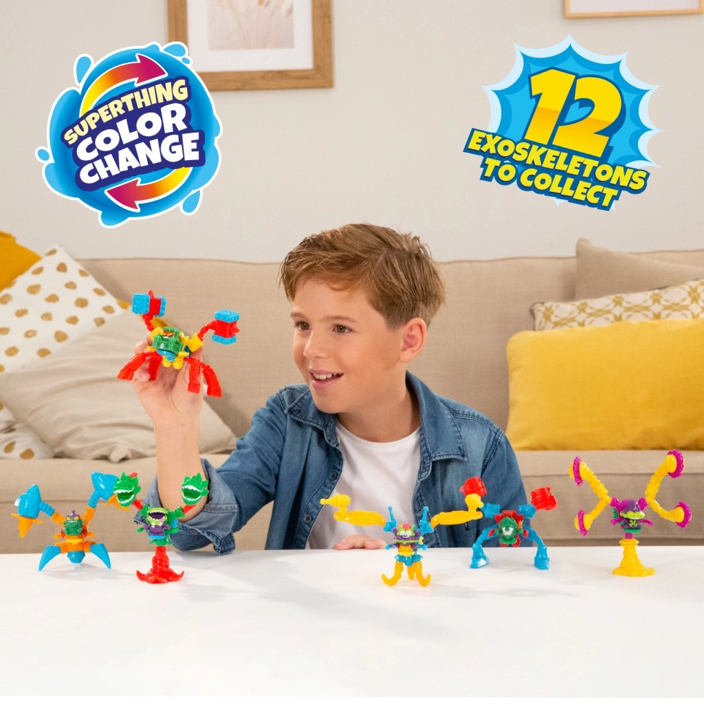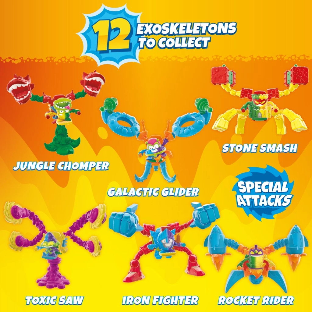 Willkommen in der Welt der SuperThings, in der alltägliche Gegenstände zu Superhelden und Superschurken werden. Diese Mutant Battle Serie bringt neue Aufregung mit 12 neuen Exoskeletten, die Ihre Sammlungen bereichern.