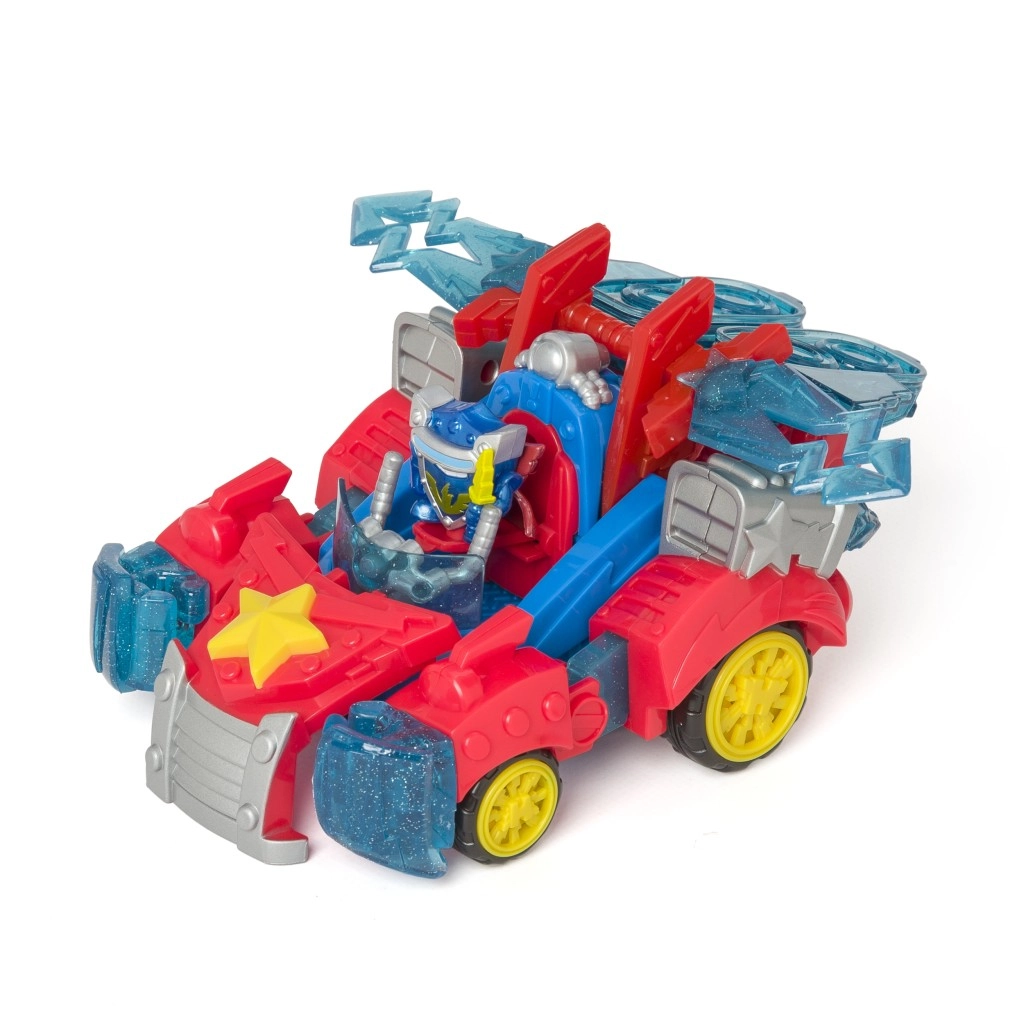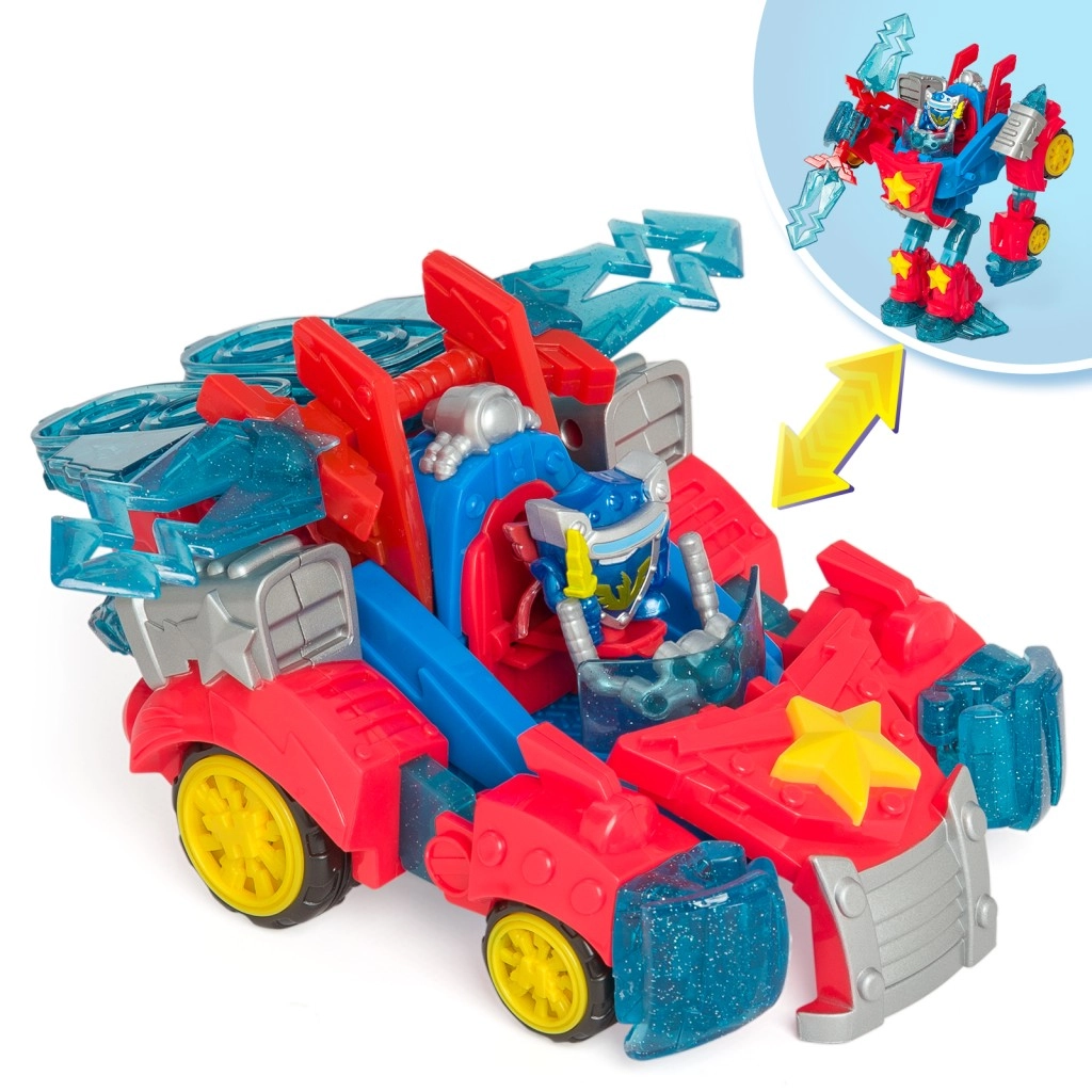 Das Set SuperThings Turbo Warrior Power bringt die Aufregung von Kaboom City in Ihr Leben! Dieses Spielzeug repräsentiert eine neue Ära des Spaßes, in der sich Roboter in Fahrzeuge verwandeln und spezielle Waffen für wilde Kämpfe mitbringen.