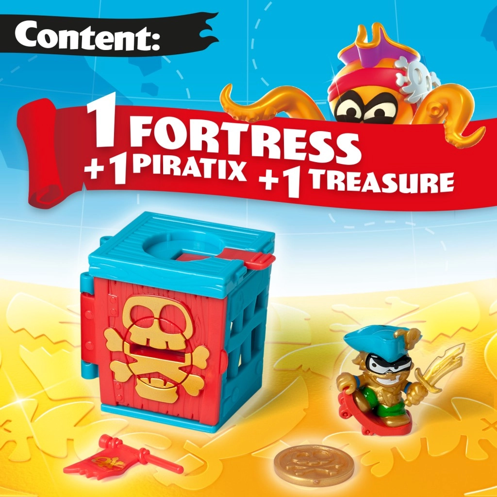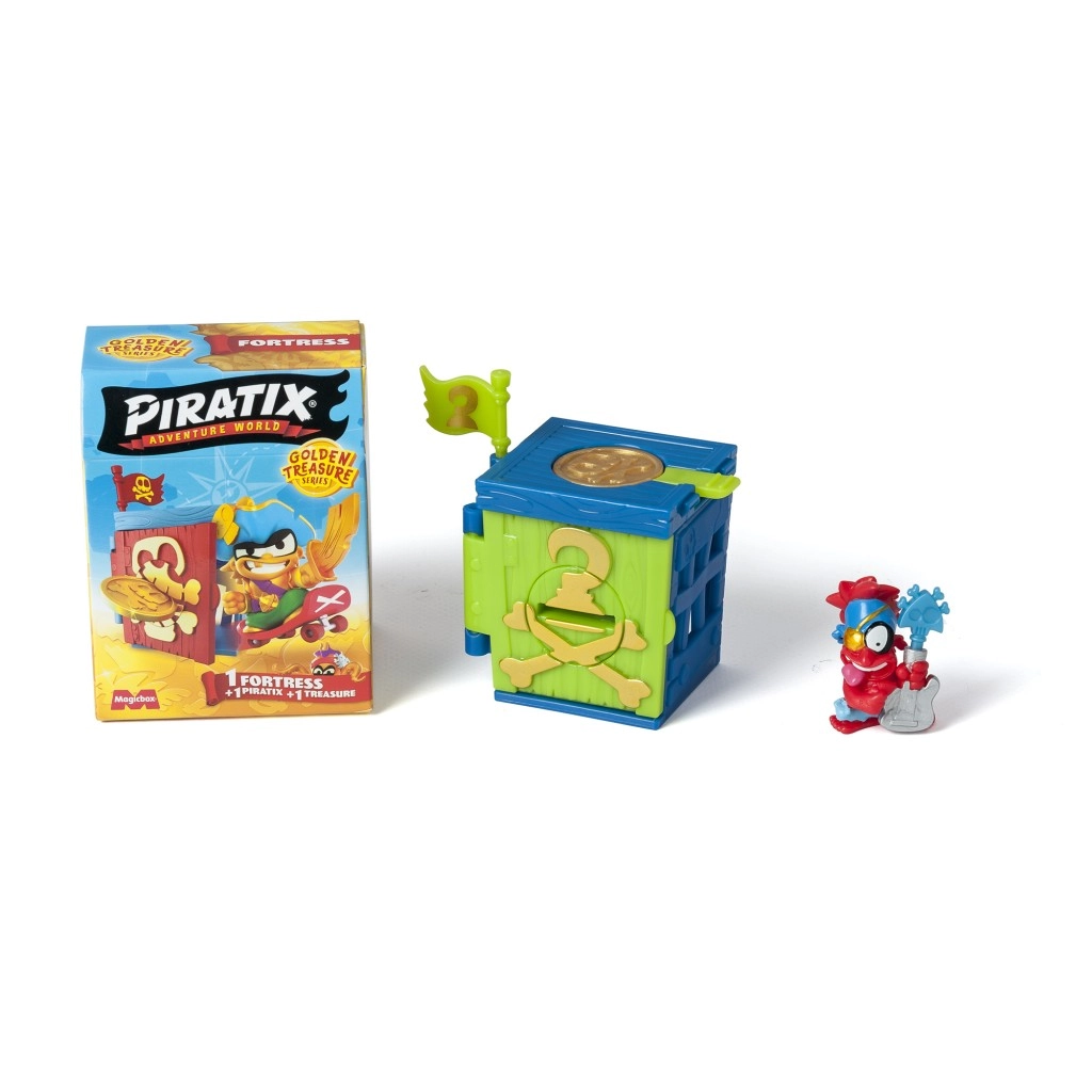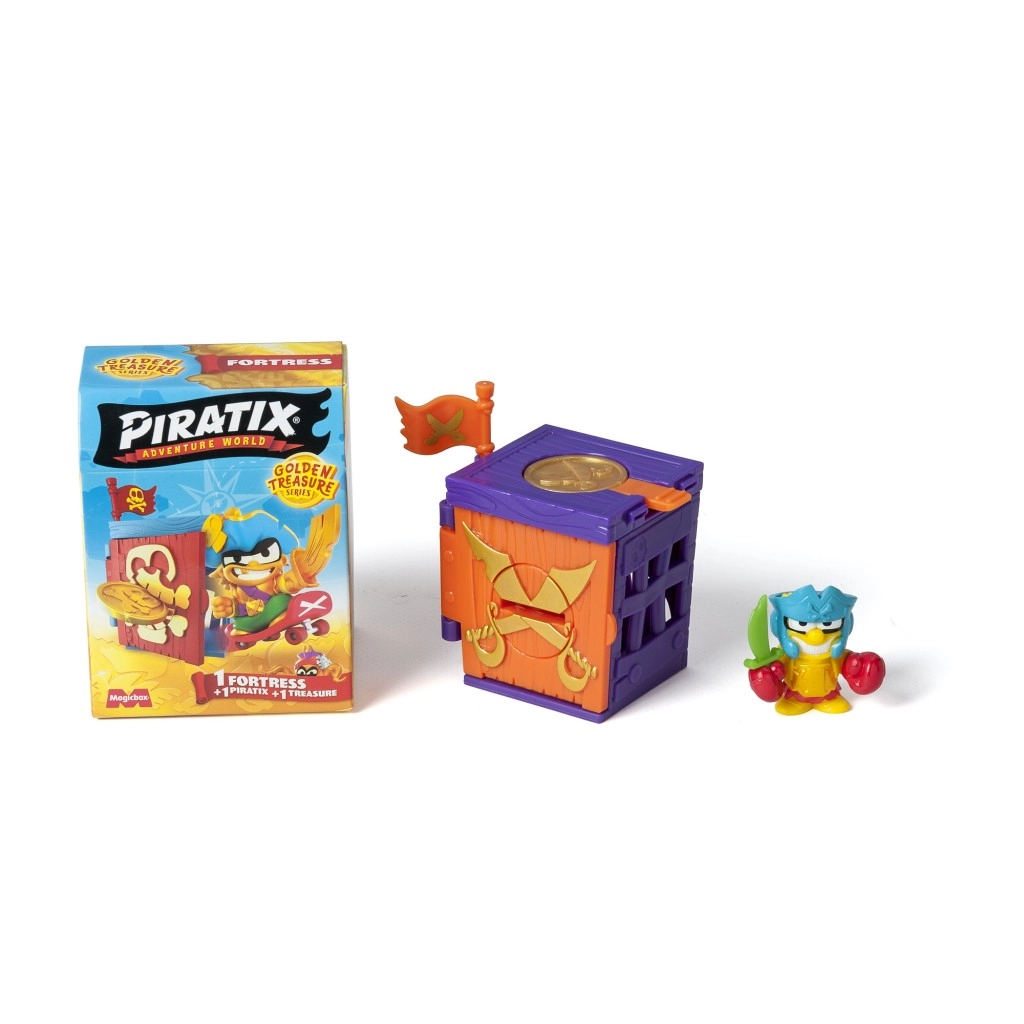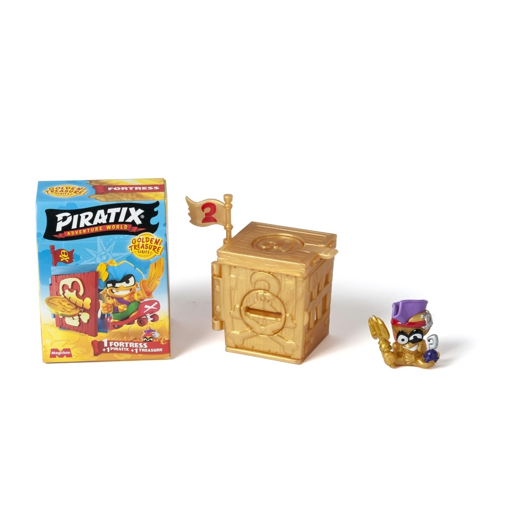 Entdecke die Welt piratischer Schätze mit der Piratenfigur Golden Treasure Festung. Dieses Spielzeug gibt Ihren Kindern die Möglichkeit, Schätze zu erkunden und zu sammeln. Jede Festung verbirgt Geheimnisse und Überraschungen im Inneren. Mit der exklusiven Münze können Kinder das Rätsel lösen und die Türen zur geheimen Festung öffnen. Das spannende Katapult, mit dem man Rivalen in die Luft schießen kann, ist das i-Tüpfelchen!