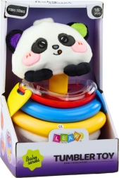 Dieses entzückende Tumbler-Spielzeug in Pandaform ist so konzipiert, dass es sich sanft wiegt, ohne umzukippen, was Kinder zur Interaktion anregt und ihre Neugier weckt. Bunte Ringe mit unterschiedlichen Oberflächen, darunter einer mit einem transparenten Abschnitt voller rasselnder Kugeln, ermöglichen es den Kindern, die Bewegung der Elemente zu beobachten, was ihren Sehsinn, ihr Gehör fördert und kausale Zusammenhänge lehrt.