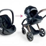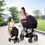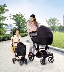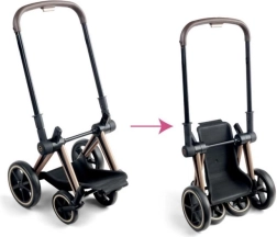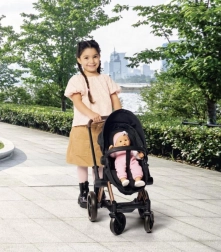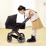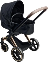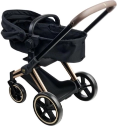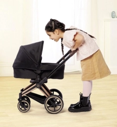 Der Kinderpuppenwagen Cybex ist für Puppen konzipiert, um das Design des berühmten Cybex Priam Kinderwagens getreu nachzuahmen. Seine Konstruktion verfügt über ein verstellbares Verdeck, einen abnehmbaren Schutzbezug und einen robusten Korb zur Aufbewahrung von Puppenaccessoires. Der Wagen lässt sich leicht zusammenklappen, was den Transport und die Lagerung erleichtert.