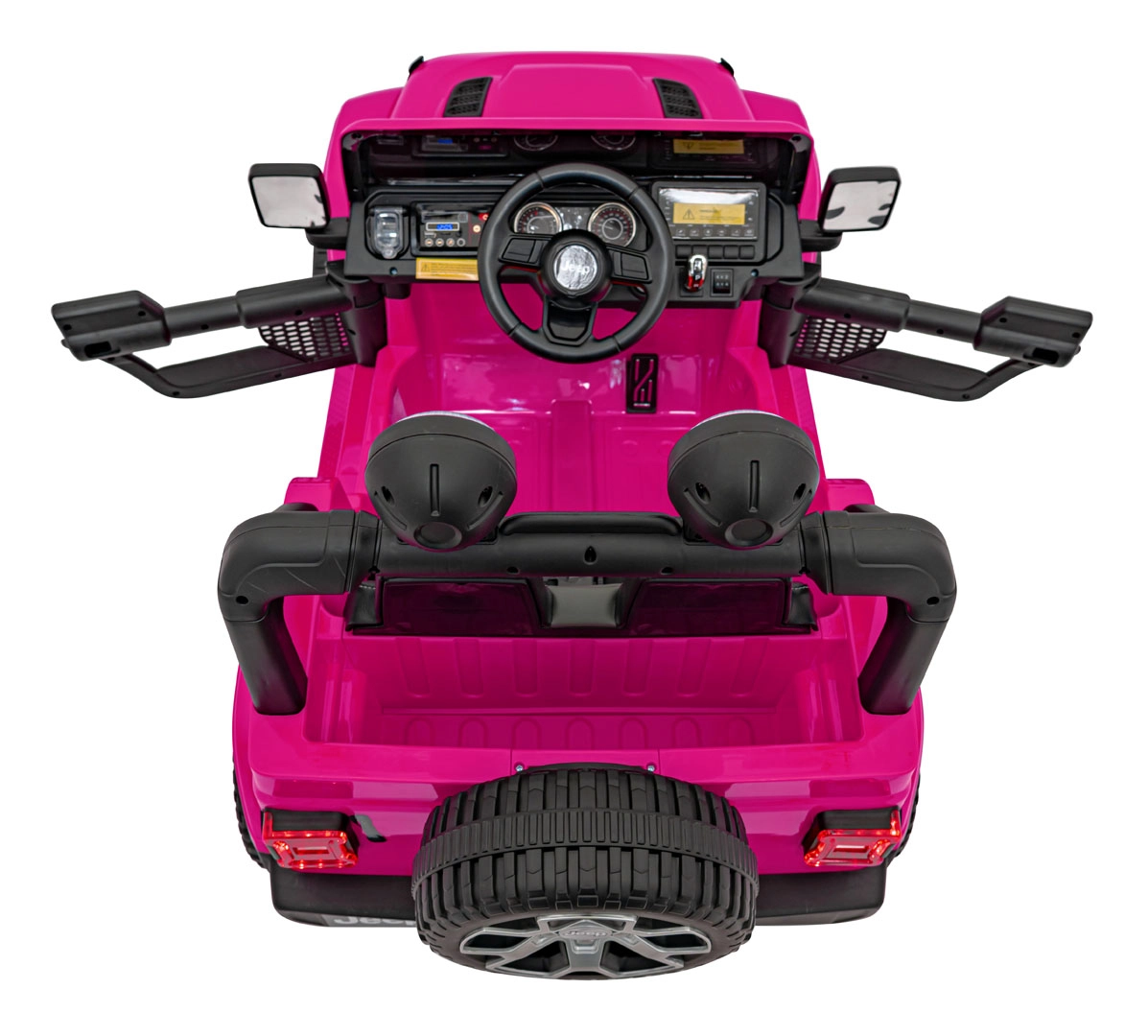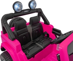 Das pinke elektrische Auto Jeep Wrangler Rubicon ist die perfekte Wahl für kleine Fahrerinnen und Fahrer, die Abenteuer lieben. Dank des Antriebs 4×45 W und des sanften Anfahrens bietet es eine komfortable und sichere Fahrt vorwärts und rückwärts – zur Freude von Kindern und Eltern. EVA-Schaumräder mit grobem Profil und hintere Stoßdämpfer sorgen für Stabilität auf verschiedenen Untergründen, während LED-Lichter vorne und am Dachbogen einen realistischen Offroad-Look verleihen.