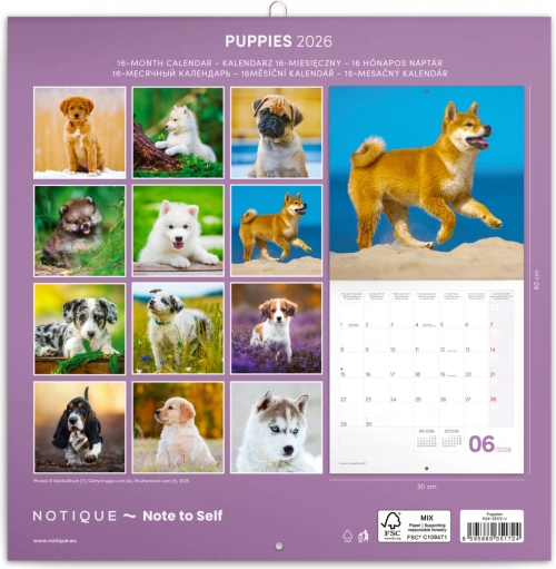 Genießen Sie ein Jahr voller niedlicher Welpen mit diesem Notizkalender für das Jahr 2026. Enthält ein übersichtliches Kalendarium und Platz für Ihre persönlichen Notizen.