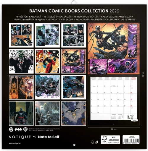 Notizkalender Batman Comics 2026 mit ikonischen Illustrationen aus Gotham City. Ideal für Batman-Fans.