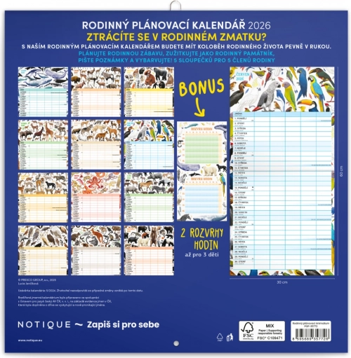 Wählen Sie den Familienplaner-Kalender Animalium 2026 und behalten Sie den Überblick über die Aktivitäten Ihrer ganzen Familie. Dieser Kalender bietet: