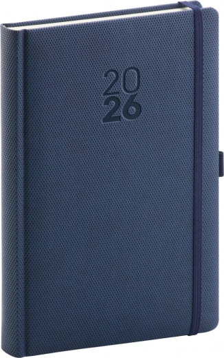 Der Tageskalender Diamante 2026 besticht durch sein elegantes Blau und eine Struktur, die den Facettenschliff eines Diamanten imitiert. Er ist ideal für alle Arten von Prägungen dank seiner feinen Oberfläche. Zu den praktischen Eigenschaften des Kalenders gehören: