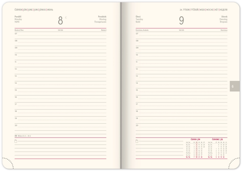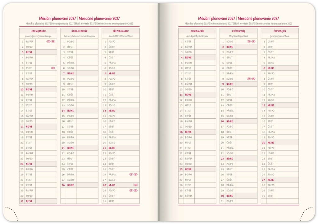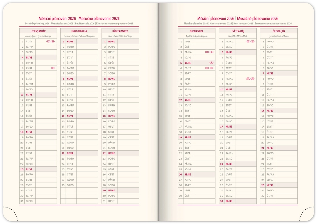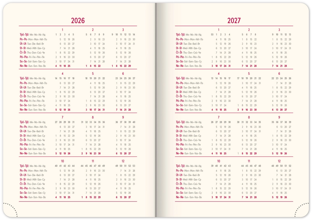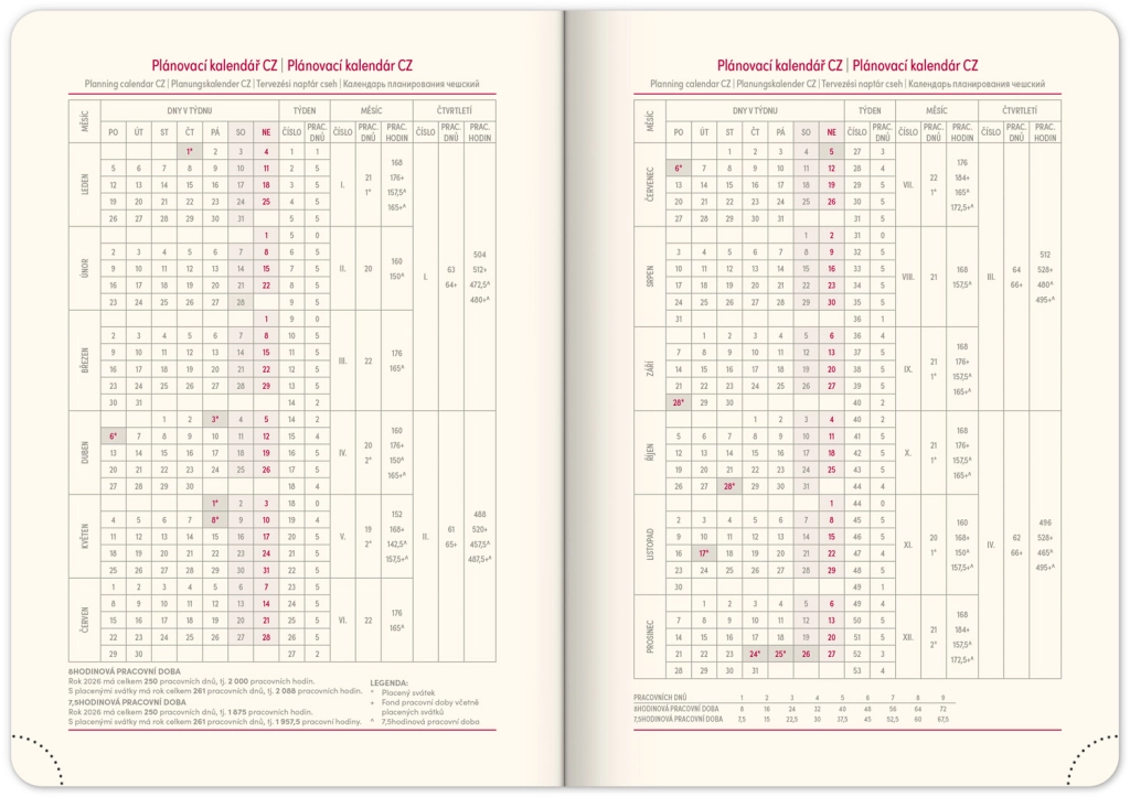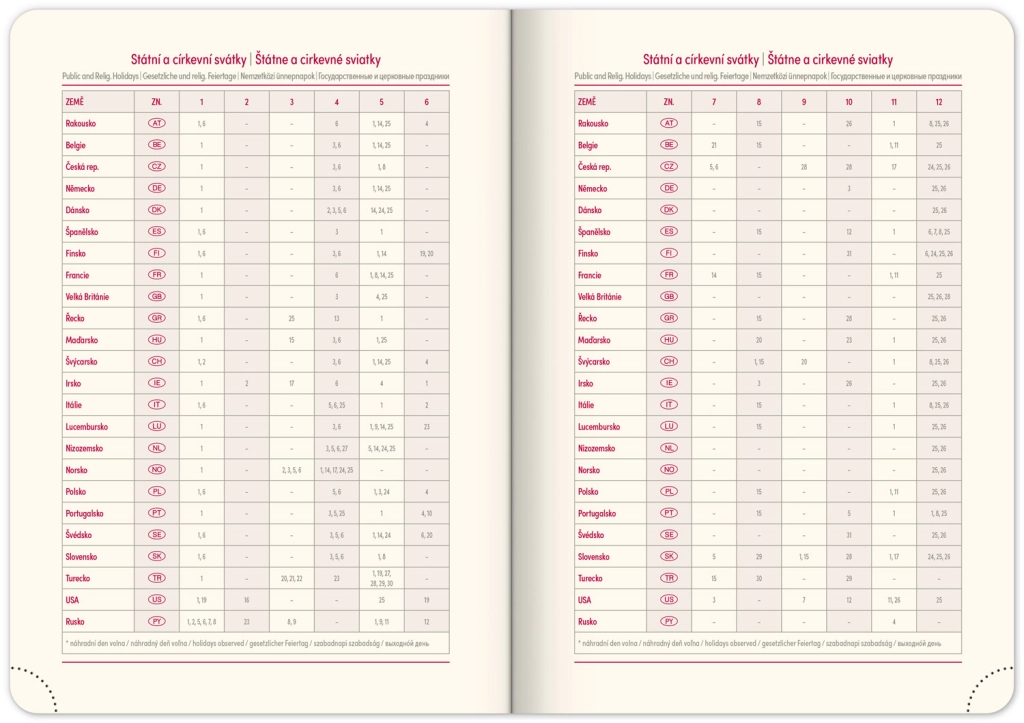 Der Kalender enthält auch ein umfangreiches Angebot an Kalendern und weiteren nützlichen Funktionen wie Monats- und Jahresplänen, Feiertagslisten sowie einer Karte von Tschechien und der Slowakei.