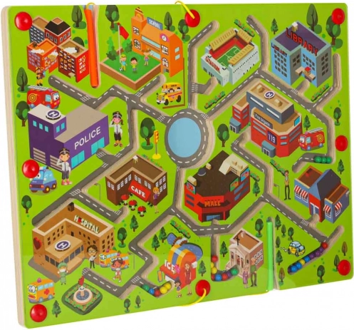 Dieses Holz-Magnetspiel Labyrinth wurde entwickelt, um ein großartiges Spielerlebnis während der Reise oder zu Hause zu bieten. Dank des Stadtmotivs bietet es einfache Bedienung und Spaß für zwei Personen.