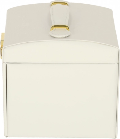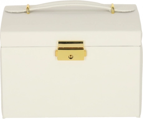Die robuste Verarbeitung, das weiße Design mit goldenen Details und die Möglichkeit, es mit einem Schlüssel zu verschließen, gewährleisten eine sichere Aufbewahrung Ihrer Schätze zu Hause und auf Reisen. Das Schmuckkästchen ist leicht, kompakt und zugleich ausreichend geräumig für größere Sammlungen.