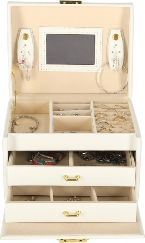 Schmuckkästchen mit Schubladen und Spiegel, weiß