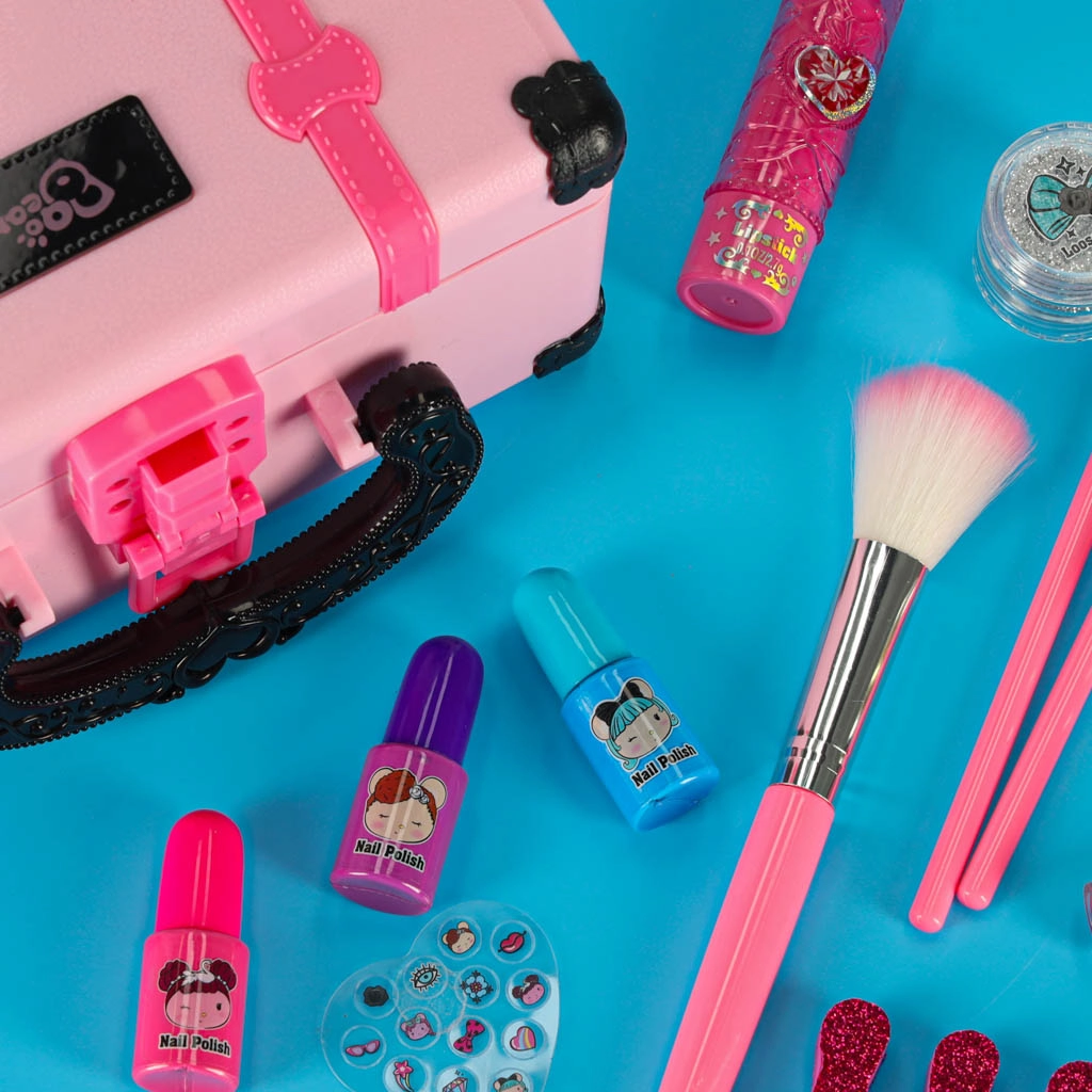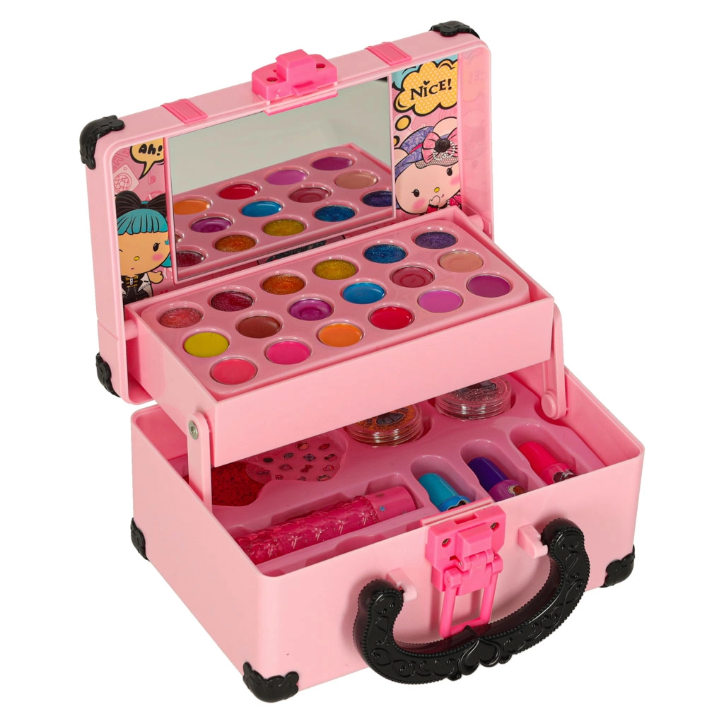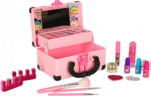 Wir präsentieren das Kinder-Kosmetikset, das Freude am Schminken auf sichere und spielerische Weise bringt. Dieses Set enthält alles, was Ihr Kind für ein perfektes Make-up benötigt, einschließlich einer bunten Reihe von Lidschatten, Lippenstiften und anderem Zubehör. Das Set zeichnet sich durch einfache Öffnung und einen praktischen Griff für bequemes Tragen aus.
