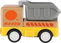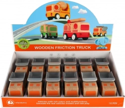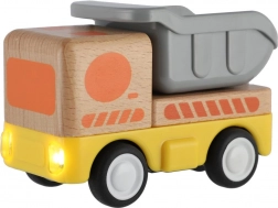 Robuster Holzspielzeug-Lkw mit Schwungrad, der jeden kleinen Fahrer begeistert! Der Schwungradantrieb ermöglicht ein einfaches Anschieben des Spielzeugautos, das dann von selbst vorwärts fährt. Ideal für kleine Kinderhände.