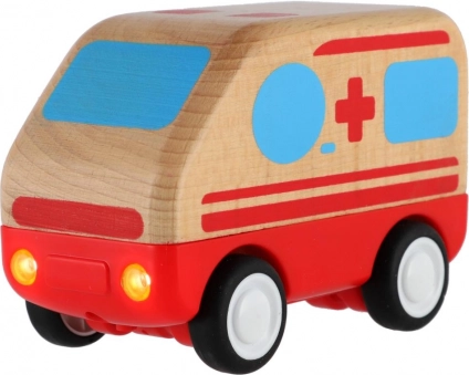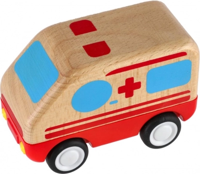 Der Holzkrankenwagen bringt kleinen Kindern viel Freude und fördert ihre motorischen Fähigkeiten. Dank des Schwungrads ist das Spielzeug selbst für die kleinsten Hände einfach zu bedienen. Herausstechend ist die hochwertige Holzverarbeitung, wodurch er auch anspruchsvollen Spielen standhält.