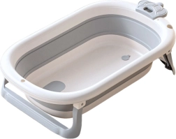 Die Wanne ist mit einem stabilen, klappbaren Gestell mit rutschfesten Füßen ausgestattet, die die Haftung erhöhen und unerwünschtes Verrutschen verhindern. Sie ist aus sicheren, ungiftigen Materialien PP und TPE gefertigt, die sanft zur empfindlichen Babyhaut sind und widerstandsfähig gegen Beschädigungen. Im Lieferumfang ist eine weiche Badematte enthalten, die das Baby in einer bequemen Position hält und ihm Wärme und Geborgenheit bietet.