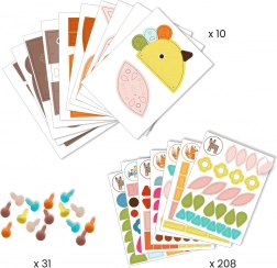 Bringen Sie Kreativität in die Welt der Kinder mit diesem Kreativset mit Aufklebern von der Marke DJECO! Kleben Sie die Aufkleber gemäß den beiliegenden Vorlagen auf und vervollständigen Sie die Tiere. Nach Fertigstellung lassen sie sich zusammenstellen und beeindruckende 3D-Figuren schaffen: Bär (50 cm), Fuchs (40 cm) und Vogel (28 cm).