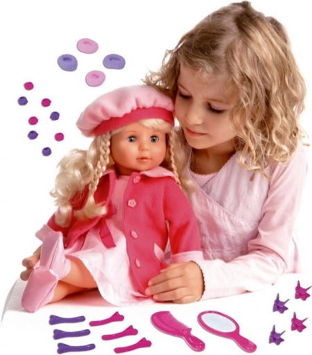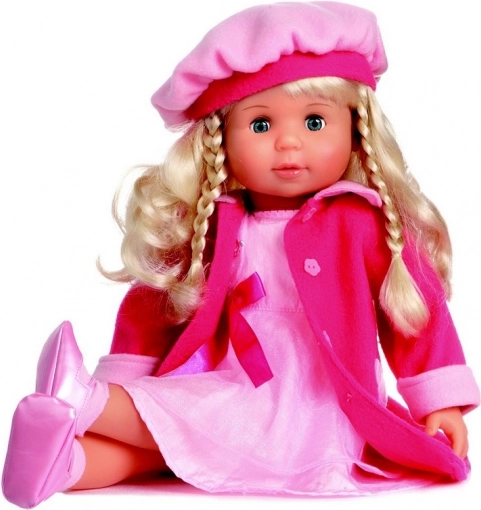 Puppe Adélka mit 100 Funktionen, spricht und singt. Gekleidet in einem stilvollen Outfit.