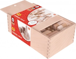 Die Bausteine sind aus widerstandsfähigem Holz mit glatter Oberfläche für sicheres Spielen gefertigt. Die praktische Holzbox mit Schiebedeckel erleichtert Ordnung und Aufbewahrung im Kinderzimmer.