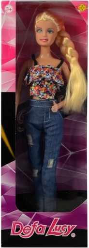 Entdecken Sie die stilvolle Puppe Lucy, die ein unverzichtbares Accessoire für Ihre Sammlung ist. Gekleidet in einem modernen Jeans-Outfit.