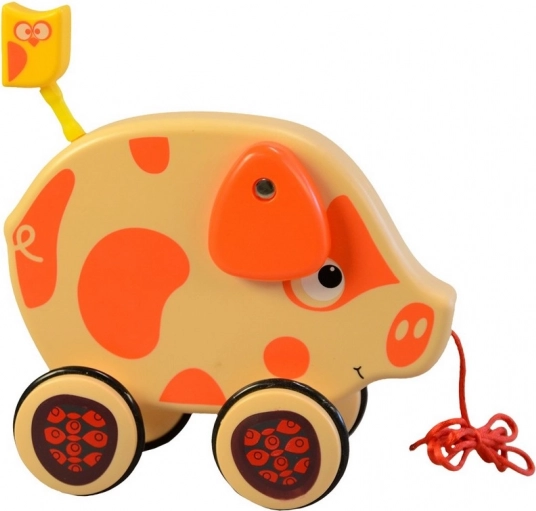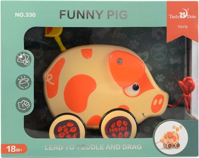 Schweinchen an der Schnur ist ein lustiges Spielzeug für Kinder, das für jede Menge Spaß sorgt. Einfach an der Schnur ziehen und das Schweinchen folgt, wobei es das Spiel mit einem fröhlichen Schwanzwedeln belebt.