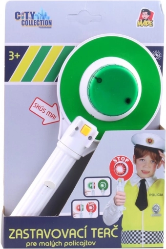 Die Kelle hat ein authentisches Design, das an echte Polizeiinstrumente erinnert, ideal für Rollenspiele.