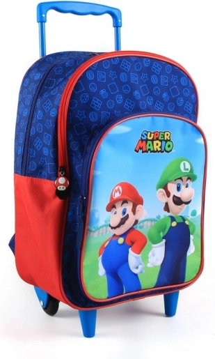 Blaue Farbe mit roten Akzenten und lustigen Motiven der Super Mario Spielserie ziehen die Aufmerksamkeit kleiner Fans auf sich.