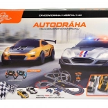 Erleben Sie die Rennbahn, die ideal für kleine und große Rennfahrer ist. Enthält zwei Autos und zwei Controller, was das Rennen zu zweit ermöglicht. Loopings mit Brücke und weiteres Zubehör garantieren dynamische und herausfordernde Fahrten.