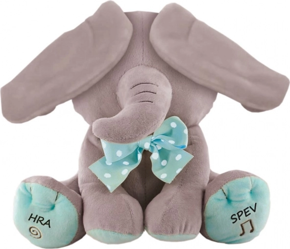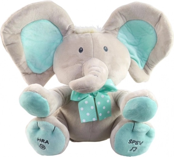 Der Elefant ist ein weicher Plüschfreund, der dem Kind nicht nur Unterhaltung bietet, sondern auch seine Sinne und Kommunikationsfähigkeiten fördert. Durch Drücken der linken Pfote hören Sie ein fröhliches Lied, während die rechte Pfote das beliebte Versteckspiel aktiviert.