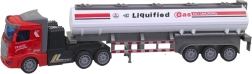 Das Spielzeug imitiert genau einen echten Tankwagen mit Details wie den Aufschriften 'Liquified Gas' und 'NO SMOKING'.