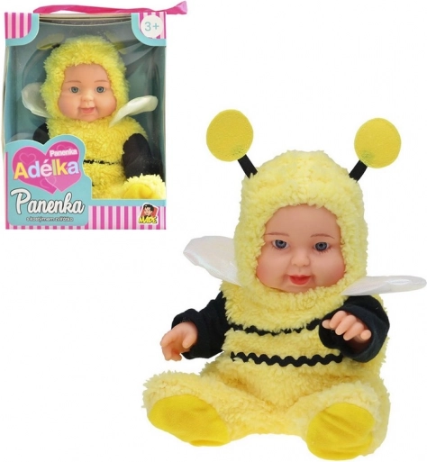 Die niedliche Puppe im Bienenkostüm ist eine großartige Begleiterin für jedes kleine Mädchen. Die Höhe der Puppe beträgt 22,5 cm und sie ist aus Vinyl gefertigt, was sie zu einem idealen Spielzeug für Kinder ab 3 Jahren macht.