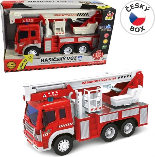 Feuerwehrwagen mit Plattform aus der City-Kollektion ist eine großartige Ergänzung für jeden kleinen Helden. Ein realistisches Modell mit Batteriebetrieb, das leuchtet und Geräusche macht, bietet ein authentisches Erlebnis des Feuerwehrfahrens.