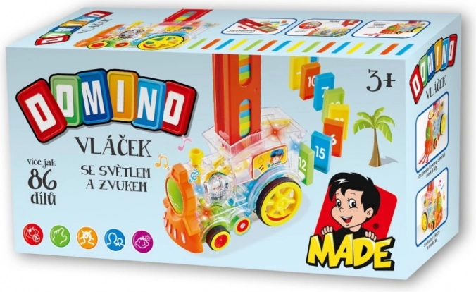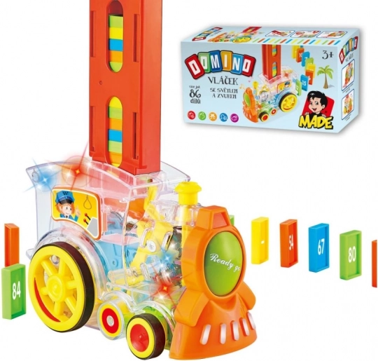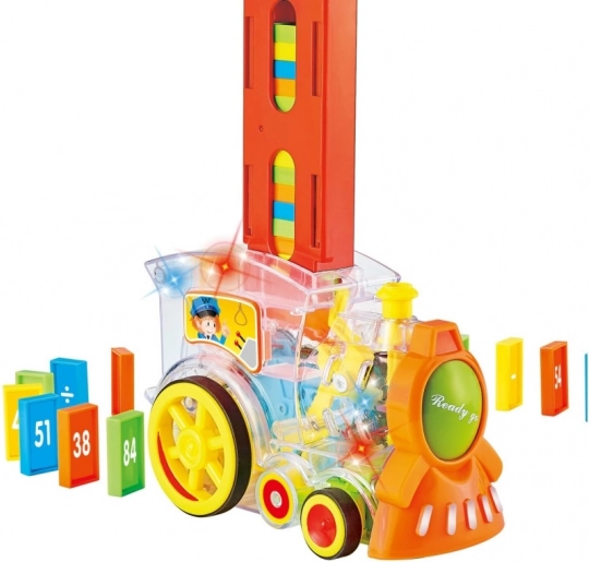 Diese originelle transparente Lokomotive ist eine großartige Möglichkeit, Kinder zu unterhalten. Die Lokomotive legt die Dominosteine mit regelmäßigen Abständen aus, was ein einzigartiges visuelles Erlebnis bietet. Das Spielzeug spielt Melodien, die den Spaß noch verstärken.