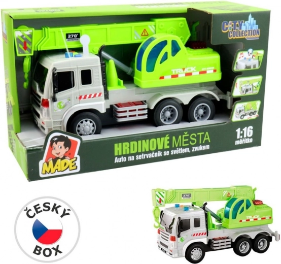 Schwungrad-Kran mit Licht und Ton ist das perfekte Spielzeug für kleine Jungs, die Autos lieben. Dieses Modell aus der tschechischen City Collection bietet realistische Spielerlebnisse.