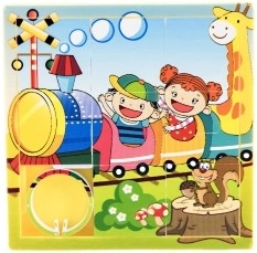 Dieses Schiebepuzzle ist ein unterhaltsames Spielzeug, das Kinder stundenlang beschäftigt. Es besteht aus einem Set von acht gleich großen Teilen mit seitlichen Rillen, die ein endgültiges Bild bilden. Die Teile lassen sich leicht verschieben und sind gerahmt, damit sie nicht herausfallen. Der Rahmen enthält ein Miniaturbild des Endbildes, das als Vorlage für die Platzierung der Teile dient.