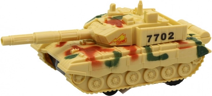Der Schwungradpanzer ist das ideale Spielzeug für kleine Militärfans. Er fördert die kindliche Vorstellungskraft mit seinen Licht- und Soundeffekten.Dieser Schwungradpanzer ist ein tolles Geschenk für Jungen ab 3 Jahren. Hergestellt aus strapazierfähigem Kunststoff, der auch dem härtesten Spiel standhält. Freuen Sie sich auf großartige Momente voller Spaß dank seiner realistischen Effekte:Licht- und Soundeffekte: Der Panzer leuchtet und gibt Geräusche von sich, die jedes Kind begeistern.Kompakte Abmessungen: Mit Abmessungen von 16 x 6 x 6,5 cm ist er ideal für Innen- und Außenspiele.Batterien im Lieferumfang: Der Panzer ist startklar mit drei AG13 Batterien, die im Lieferumfang enthalten sind.