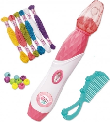 Dieses Perlen-Stylingset für Haare enthält alles, was Ihr Kind benötigt, um originelle Frisuren zu kreieren. Die Anwendung ist einfach – die Fäden werden an den Haaren befestigt und mithilfe des Diamantknopfs wird die Haarsträhne verdreht. Anschließend wird das Ende der Strähne einfach mit einer Perle gesichert, und die neue Frisur ist fertig.