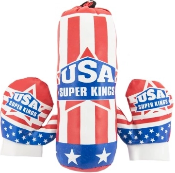 Eine lustige und sichere Ausrüstung für kleine Sportler: Kinder-Boxsack mit Handschuhen im Design der amerikanischen Flagge. Ideal zum Auspowern, zur Förderung der Koordination und für spielerische Aktivität. Leicht und kompakt, einfach zu transportieren und geeignet ab 3 Jahren.