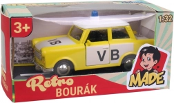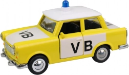 Auto Trabant in Polizei-Version ist ein kleines Metallmodell, ideal für kleine Jungs, die adrenalingeladene Spiele mit Polizeiautos lieben.