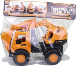 Der Bagger hat eine kompakte Größe von 30 cm, was eine einfache Handhabung und Tragbarkeit gewährleistet. Die Verpackung erfolgt in einem praktischen Beutel, wodurch es ideal zum Mitnehmen ist.