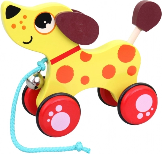 Dieses entzückende Holz Nachziehspielzeug in Form eines Hundes bietet nicht nur farbliche Vielfalt, sondern auch ein interaktives Element in Form einer Glocke, die beim Bewegen einen sanften Klang erzeugt. Spaß für Kinder ist somit garantiert!