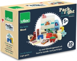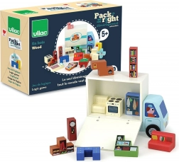 Das Holz-Logikspiel Lade es richtig von Vilac stellt eine intelligente Herausforderung für Kinder dar, die gerne herausfinden, wie man Möbel richtig in einen Umzugswagen packt. Das Spiel, inspiriert von den illustrierten Designs von Ingela P. Arrhenius, hilft, logisches Denken, räumliche Orientierung und Feinmotorik zu entwickeln. Kinder haben 19 Möbelstücke zur Verfügung, die sie im Wagen verstauen müssen.