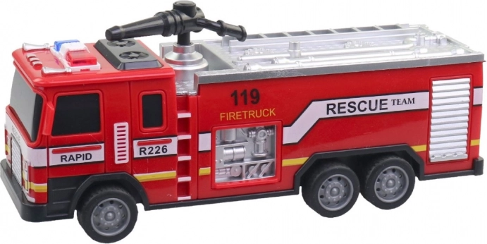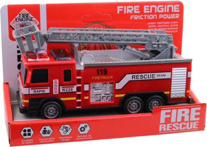 Feuerwehrauto für Kinder ab 3 Jahren, Abmessungen 17x5,5x8 cm, hochwertiger Kunststoff und Fensterbox-Verpackung.