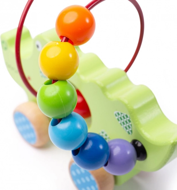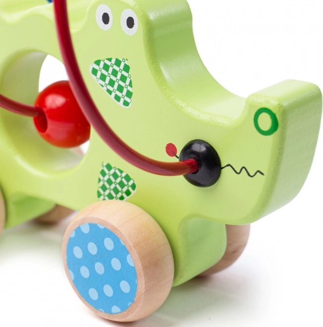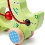 Das hölzerne Krokodil mit Perlenlabyrinth ist ideales Spielzeug für kleine Entdecker. Die bunte Konstruktion zieht die Aufmerksamkeit auf sich und lehrt Kinder, ihre Bewegungskoordination zu verbessern. Dieses Spielzeug besteht aus hochwertigen und sicheren Materialien, die den europäischen Sicherheitsnormen entsprechen. Der Kugellagereffekt der Räder sorgt dafür, dass das Krokodil leicht bewegt werden kann und Kinder das Spielzeug problemlos umstellen können.