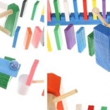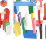 Das Set wurde entwickelt, um die Kreativität des Kindes zu fördern und ermöglicht das Erstellen verschiedenster Konstruktionen wie Tiere, Häuser, Fahrzeuge und vieles mehr. Das Set enthält außerdem viele zusätzliche Elemente, die die Gestaltungsmöglichkeiten erweitern. Zu diesen Elementen gehören zum Beispiel eine Schaukel, Treppen, eine Windmühle, Brücken und mehrere weitere Teile. Dominosteine aus Holz sind sehr langlebig und vor allem sicher für Kinder! Jeder Block hat abgerundete Kanten und ist mit einer speziellen Farbe beschichtet, die nicht abfärbt und keinerlei toxische oder chemische Stoffe enthält.