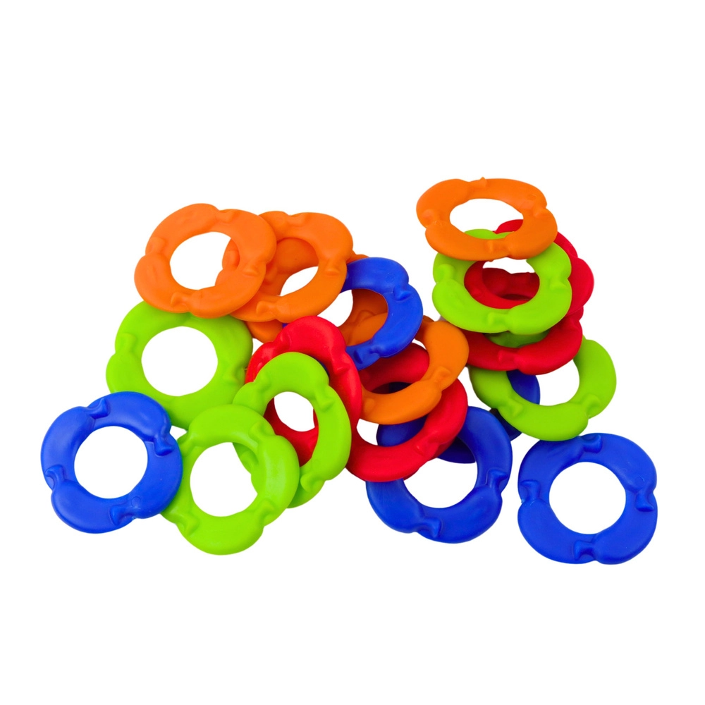 Das Set enthält 20 bunte Ringe in 4 Farben und eine große Gorillafigur auf einer stabilen Basis. Der Gorilla dreht sich automatisch, was das Spiel noch interessanter und anspruchsvoller macht.