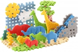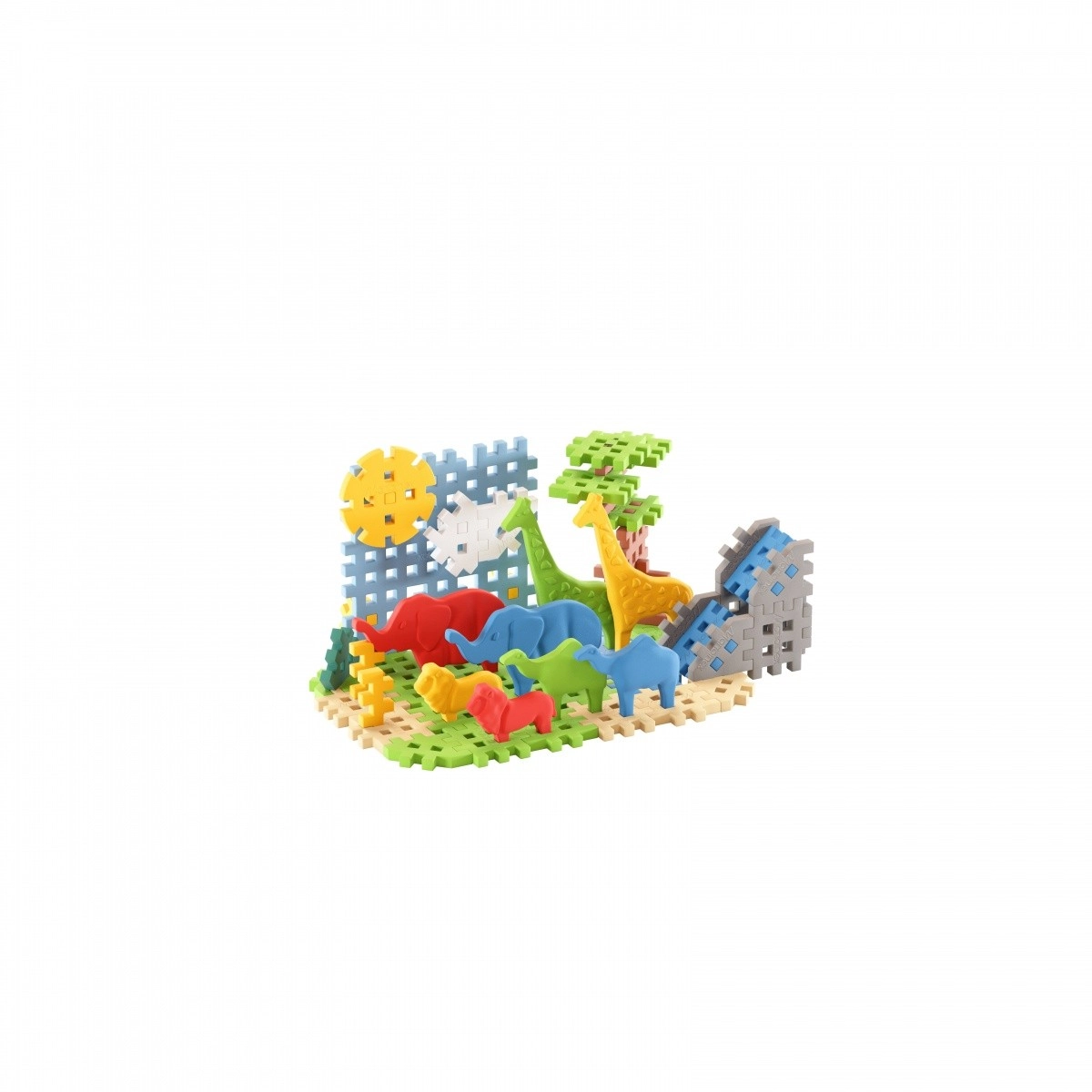 Mit dem Baustein Mini Waffle - Savannen Tiere können Kinder ihre eigene fantastische Welt voller afrikanischem Leben erschaffen. Es enthält 50 Teile in verschiedenen Formen, die es ermöglichen, Szenarien wie einen malerischen Wasserfall und beeindruckende Savannenhintergründe zu gestalten. Mit dabei sind auch eine Löwenfamilie in der Sonne, Elefanten am Wasserloch und Giraffen am Horizont.