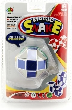 Magische Schlange, auch bekannt als Rubiks Drehung, ist ein Spielzeug zum Formen verschiedener Formen. Es fördert die Logik und Feinmotorik durch die Fähigkeit, 3D-Muster zu drehen und zu erstellen.