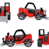 Teleskoplader Truxx2 ist aus hochwertigem Kunststoff gefertigt und hat eine sehr stabile Konstruktion. Enthalten ist auch eine abnehmbare Kabine mit Figur und gummierte Räder für leisen Betrieb.